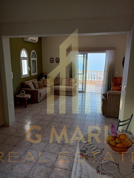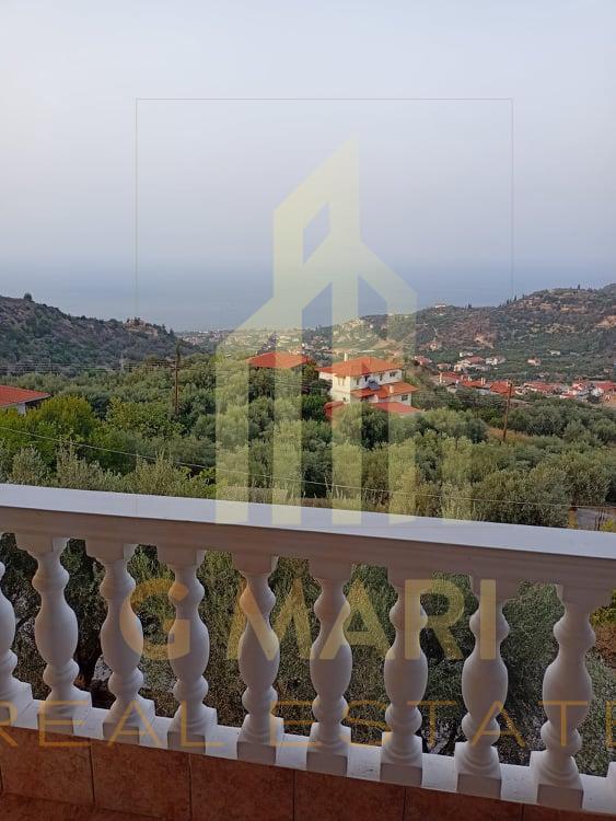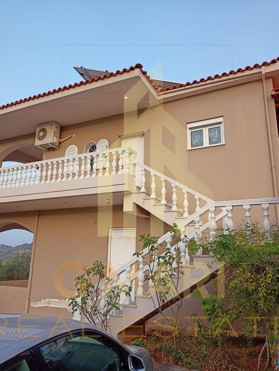 The first floor of a two-storey house of 99 sq.m. is for rent. in Derveni, Corinth, in the area of Ano Gialos, 3 km from the sea, with 3 bedrooms on the first floor, living room with energy fireplace, kitchen, 2 bathrooms and 2 balconies in front with incredible sea views, fully furnished. The property is located on a plot of 2500 sq.m. within the settlement. It also has photovoltaics. Year of construction 2003. Rental price 450 €. The first floor and the ground floor of a total area of 198 sq.m. are also available for sale. The ground floor is 99 sq.m. has 2 bedrooms, 1 bathroom, living room and kitchen. Sale price € 500,000. The address on the map is indicative of the area where the property is located.