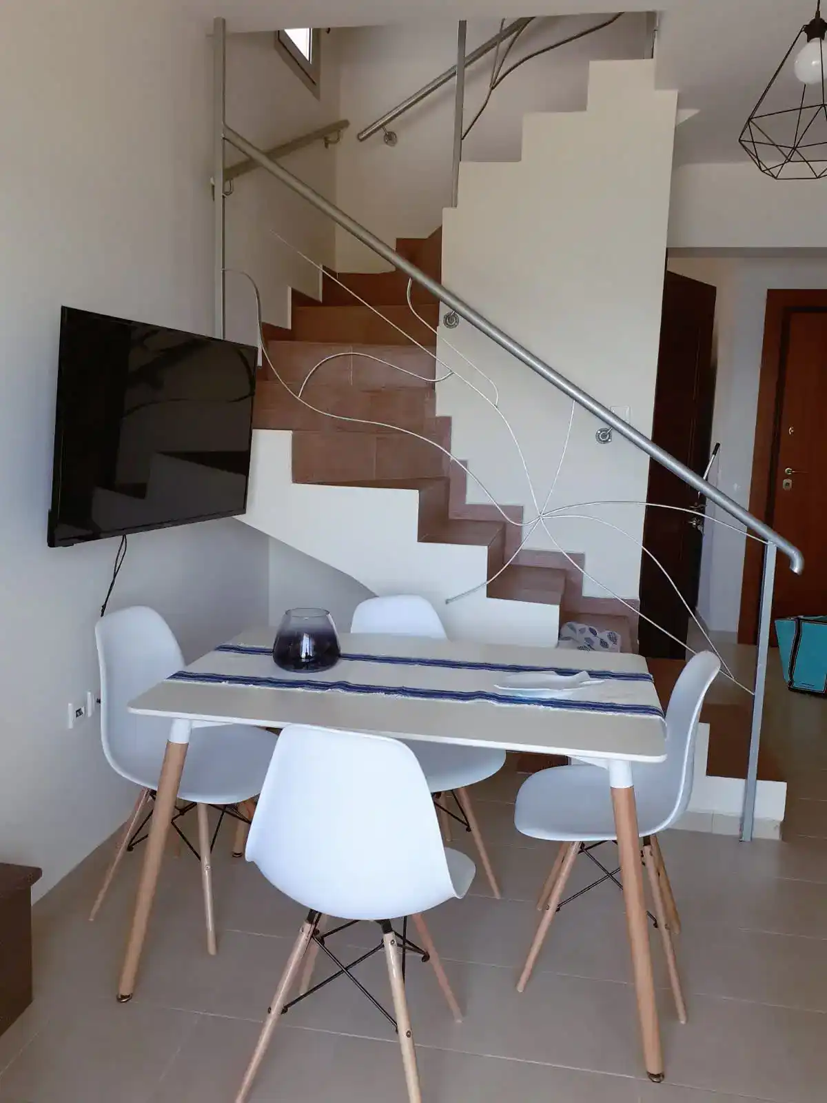 For sale maisonette apartment 73 sq.m. in Derveni, Corinthia, 10th floor in a 5-apartment building in front of the sea. It has 2 bedrooms with sea view, 2 bathrooms, living room, kitchen with fireplace, air conditioners, fully furnished. It has a parking space. Year of construction 2007. Distance from the sea 3 meters. Selling price €148,000. Energy certificate under publication. The address on the map is indicative of the area where the property is located.