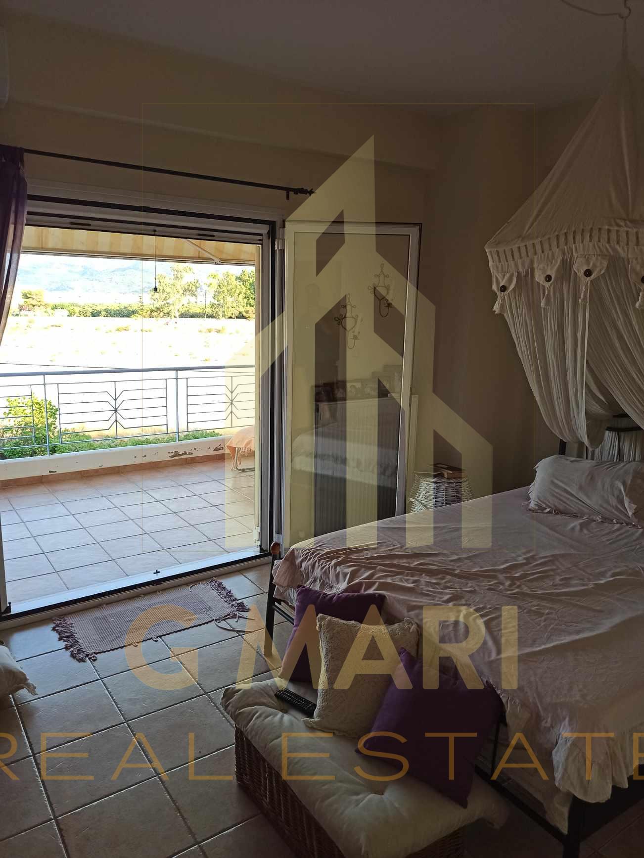 Independent furnished maisonette with a total area of 121 sq.m. 3 levels at a distance of 180 meters from Akrata beach. It has 4 bedrooms, living room with fireplace, kitchen, bathroom and WC. It is airy, with large balconies, awnings and an incredible view of the mountain and the sea. It has autonomous oil heating and A/C, aluminum frames with double glazing and has an armored security door. It also has a garden and 2 parking spaces. Ideal for family, for seasonal or permanent stay. Year of construction 2005. Selling price €150,000. The address on the map is indicative of the area where the property is located.