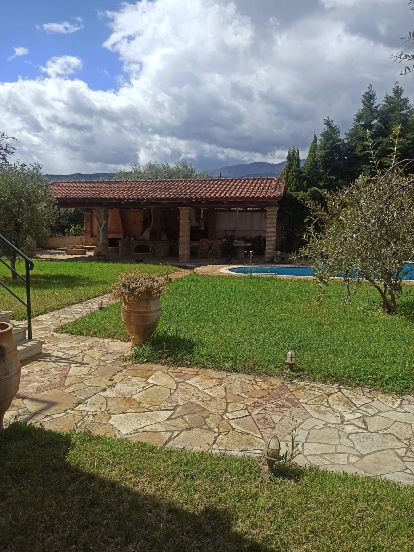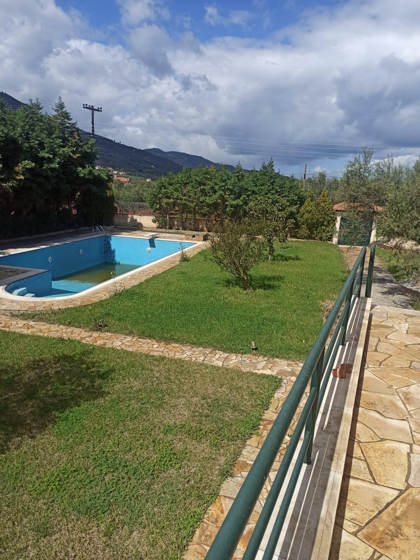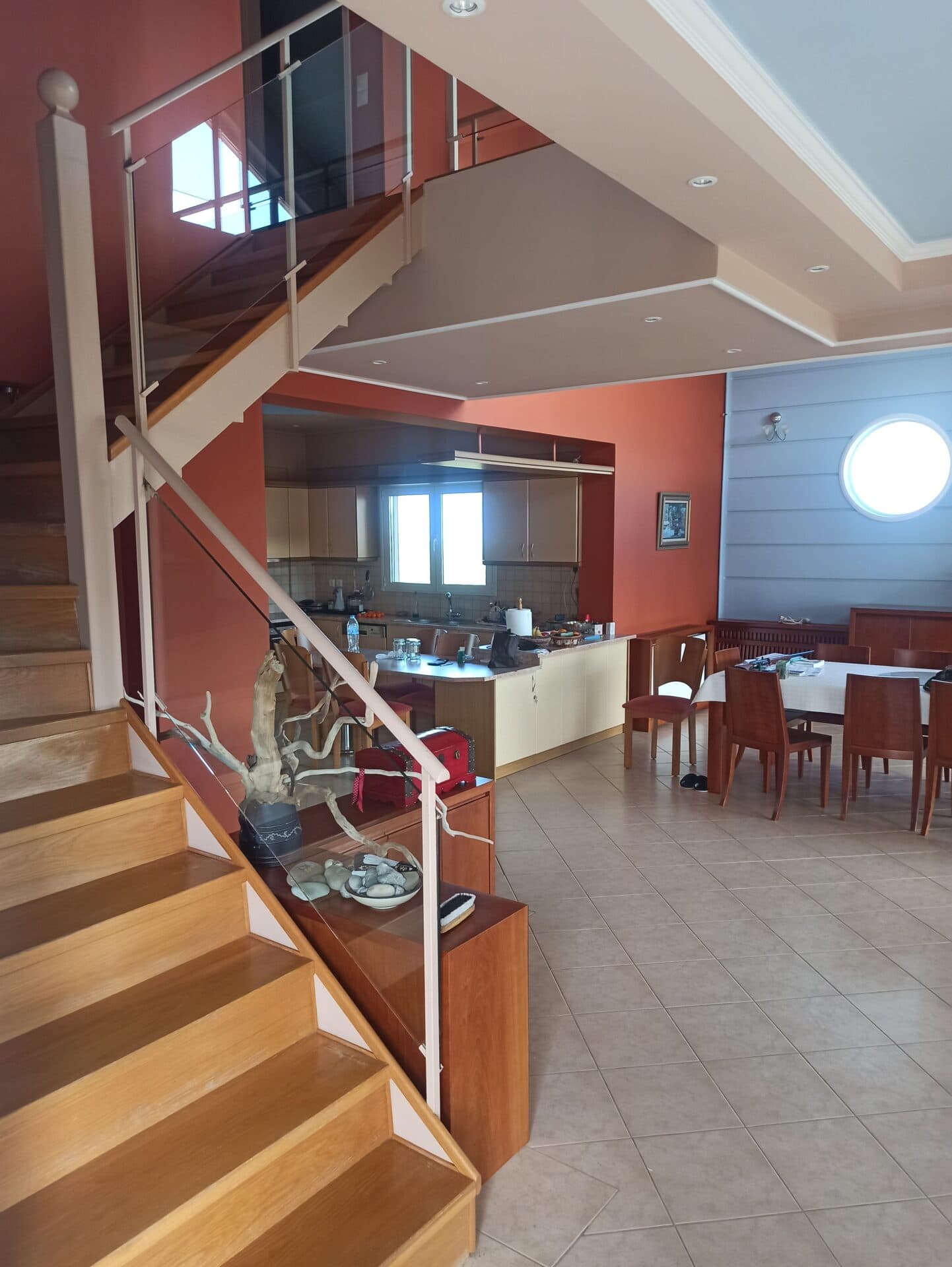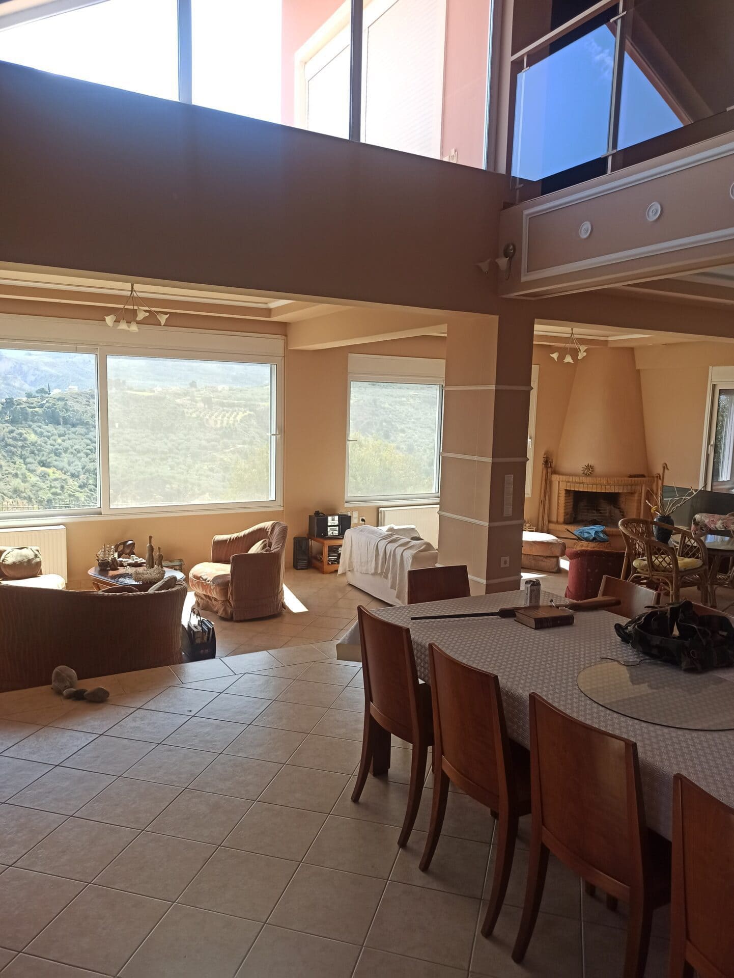 For sale a luxury three-storey maisonette in Ano Akrata, Prefecture of Achaia, Ampelos area, with a total area of 340 sq.m. , (230 sq.m. first floor + second floor) and basement (110 sq.m.) with 4 bedrooms, 2 living rooms, fireplace, 2 kitchens, 5 bathrooms, autonomous oil heating, heavy-duty aluminum frames, alarm, solar, 3 air conditioners, 4 balconies overlooking the sea, yard, garden, 2500 sq.m. , swimming pool, storage room, barbecue and closed garage. Year of construction 2006. Price: 600,000 euros. The address on the map is indicative of the area where the property is located.