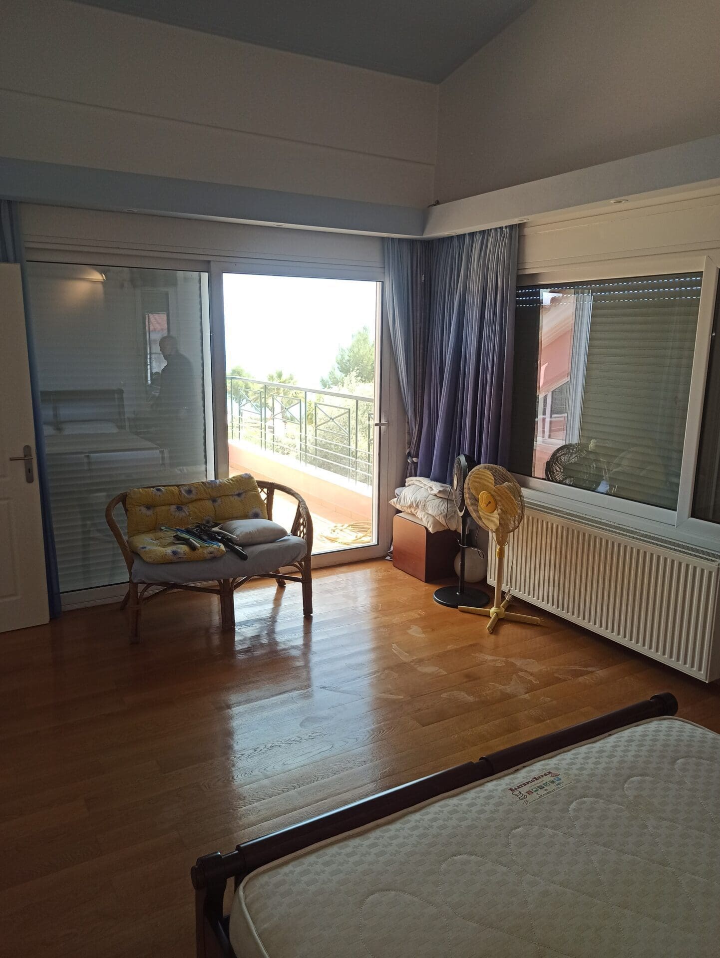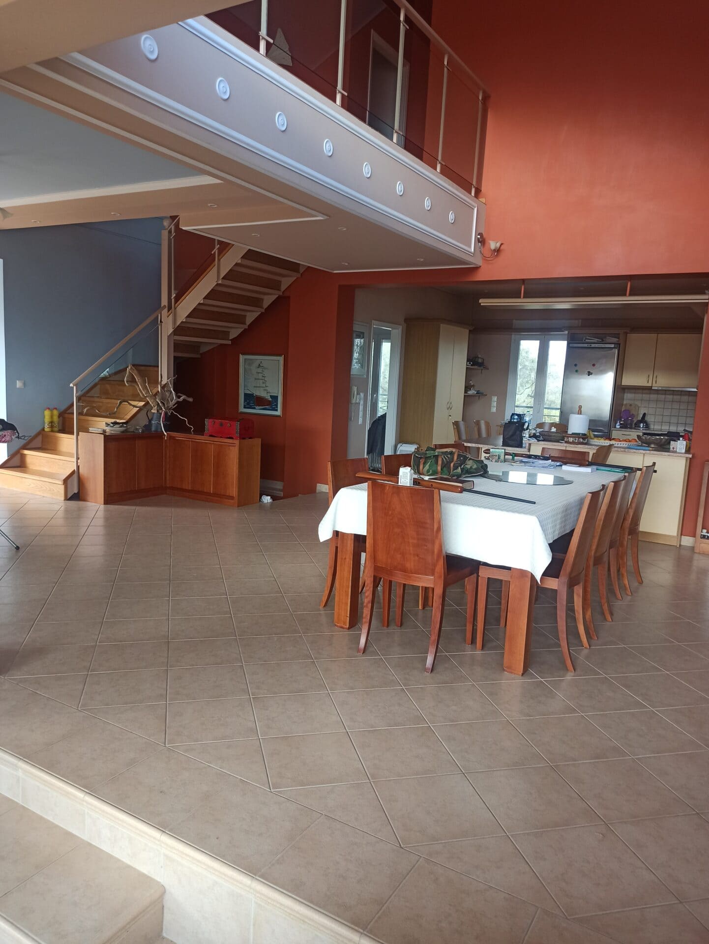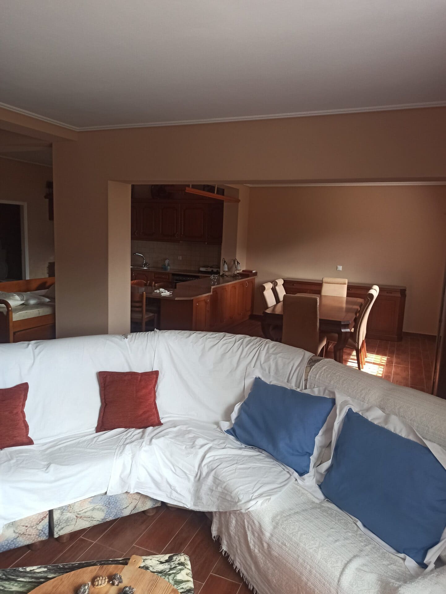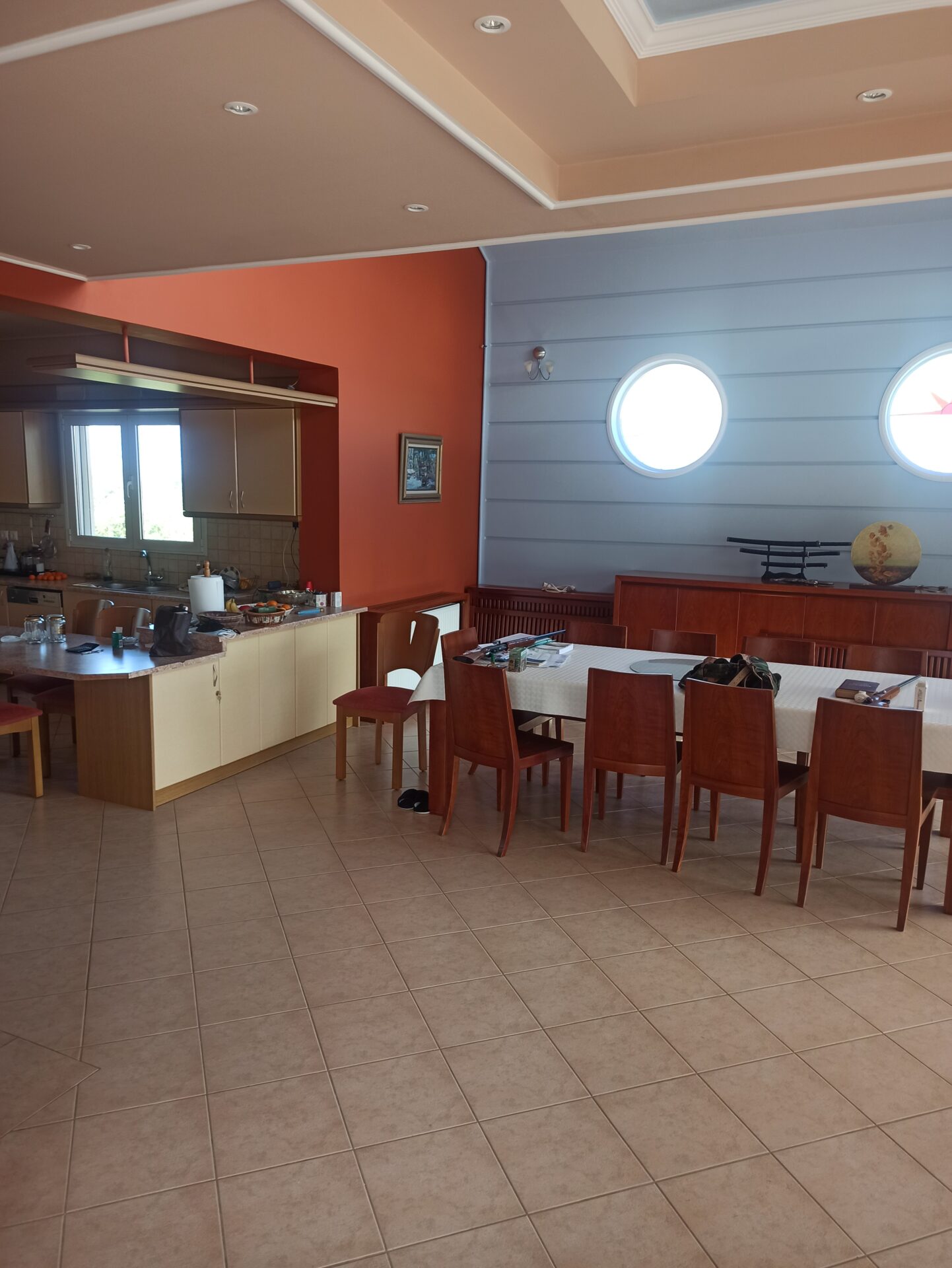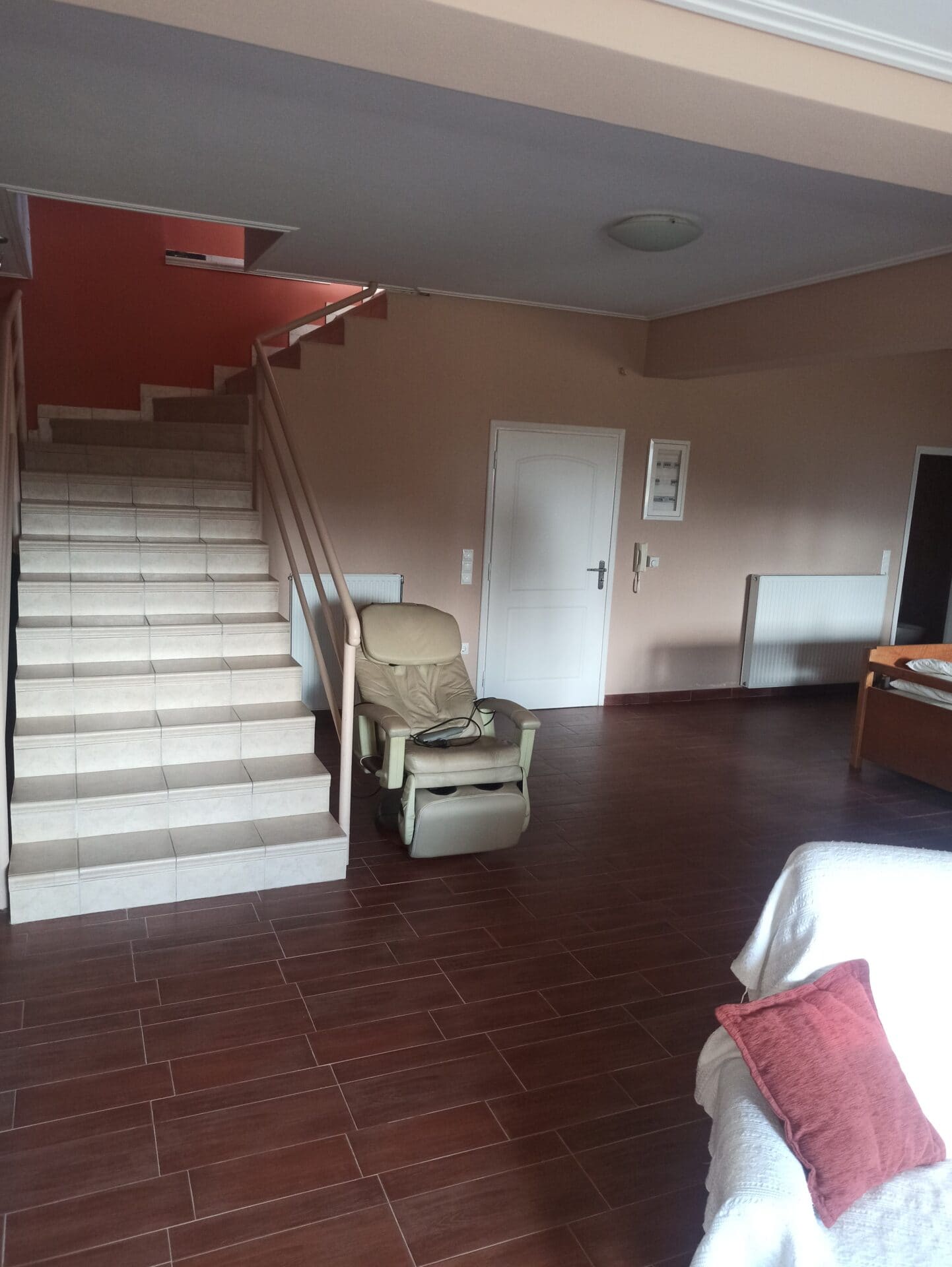 For sale a luxury three-storey maisonette in Ano Akrata, Prefecture of Achaia, Ampelos area, with a total area of 340 sq.m. , (230 sq.m. first floor + second floor) and basement (110 sq.m.) with 4 bedrooms, 2 living rooms, fireplace, 2 kitchens, 5 bathrooms, autonomous oil heating, heavy-duty aluminum frames, alarm, solar, 3 air conditioners, 4 balconies overlooking the sea, yard, garden, 2500 sq.m. , swimming pool, storage room, barbecue and closed garage. Year of construction 2006. Price: 600,000 euros. The address on the map is indicative of the area where the property is located.