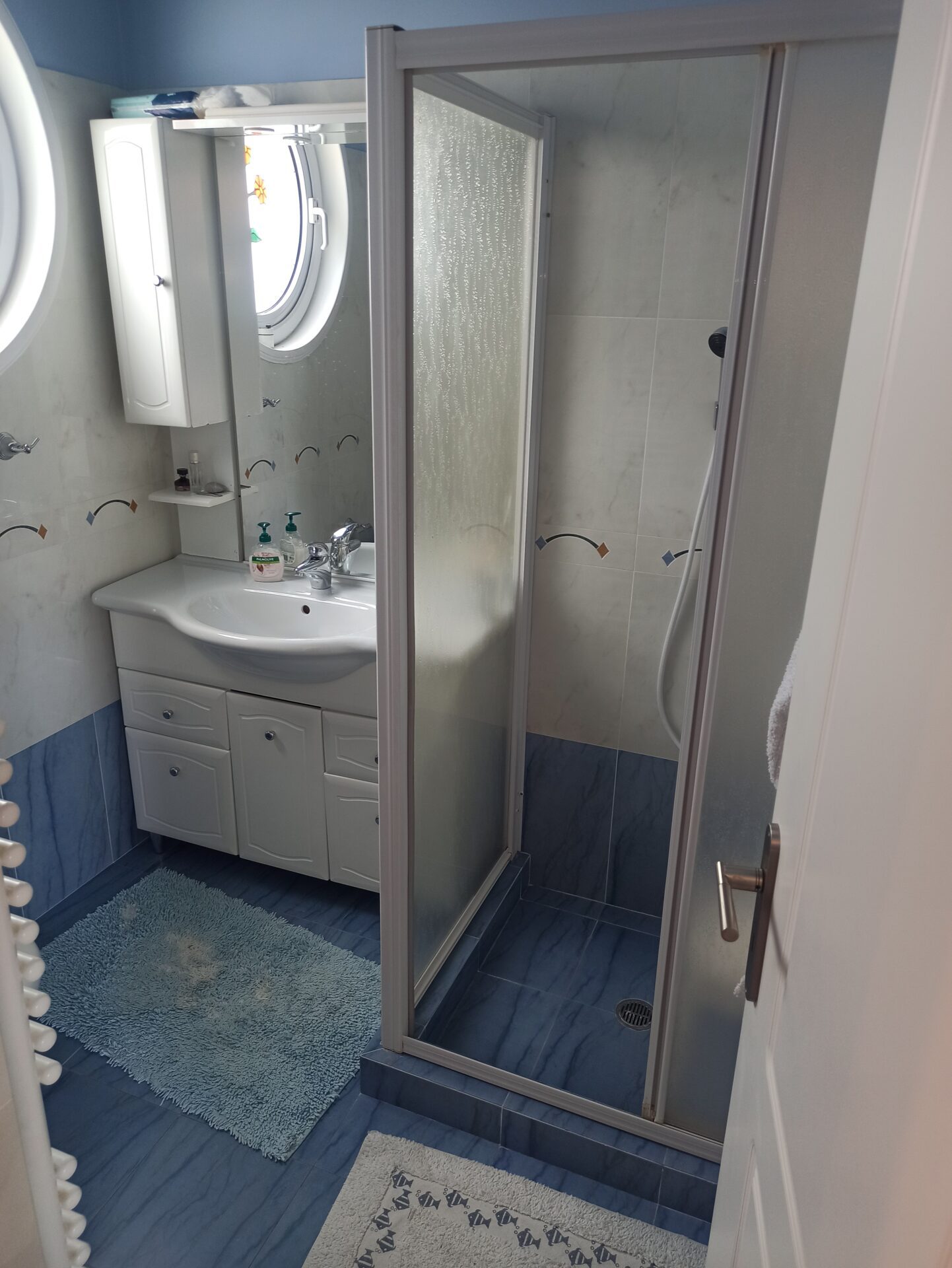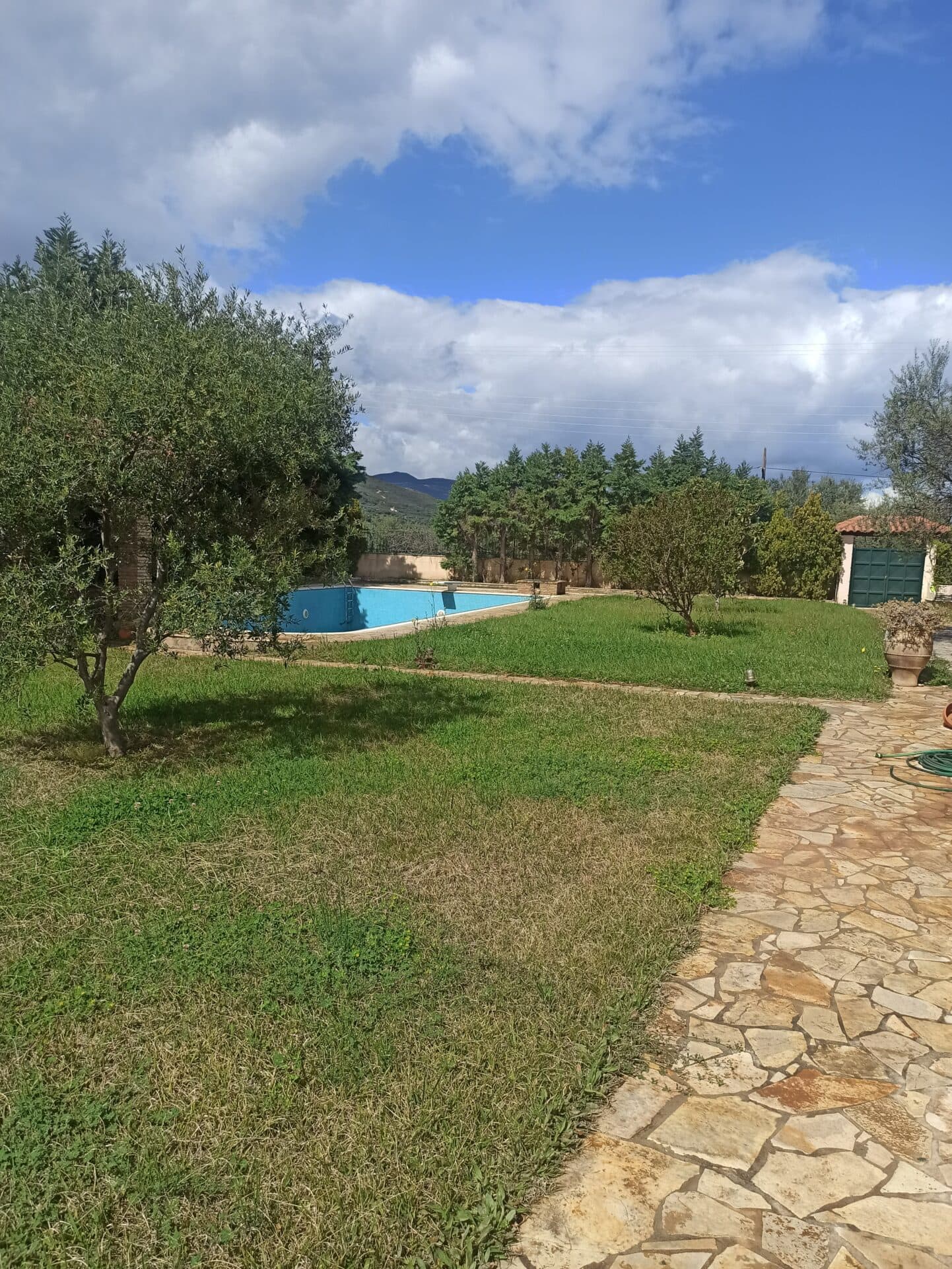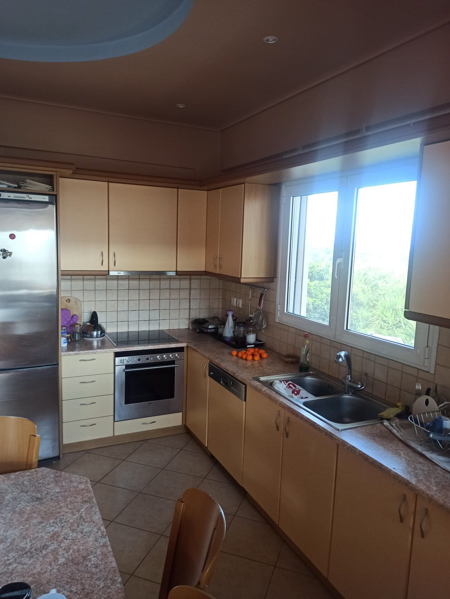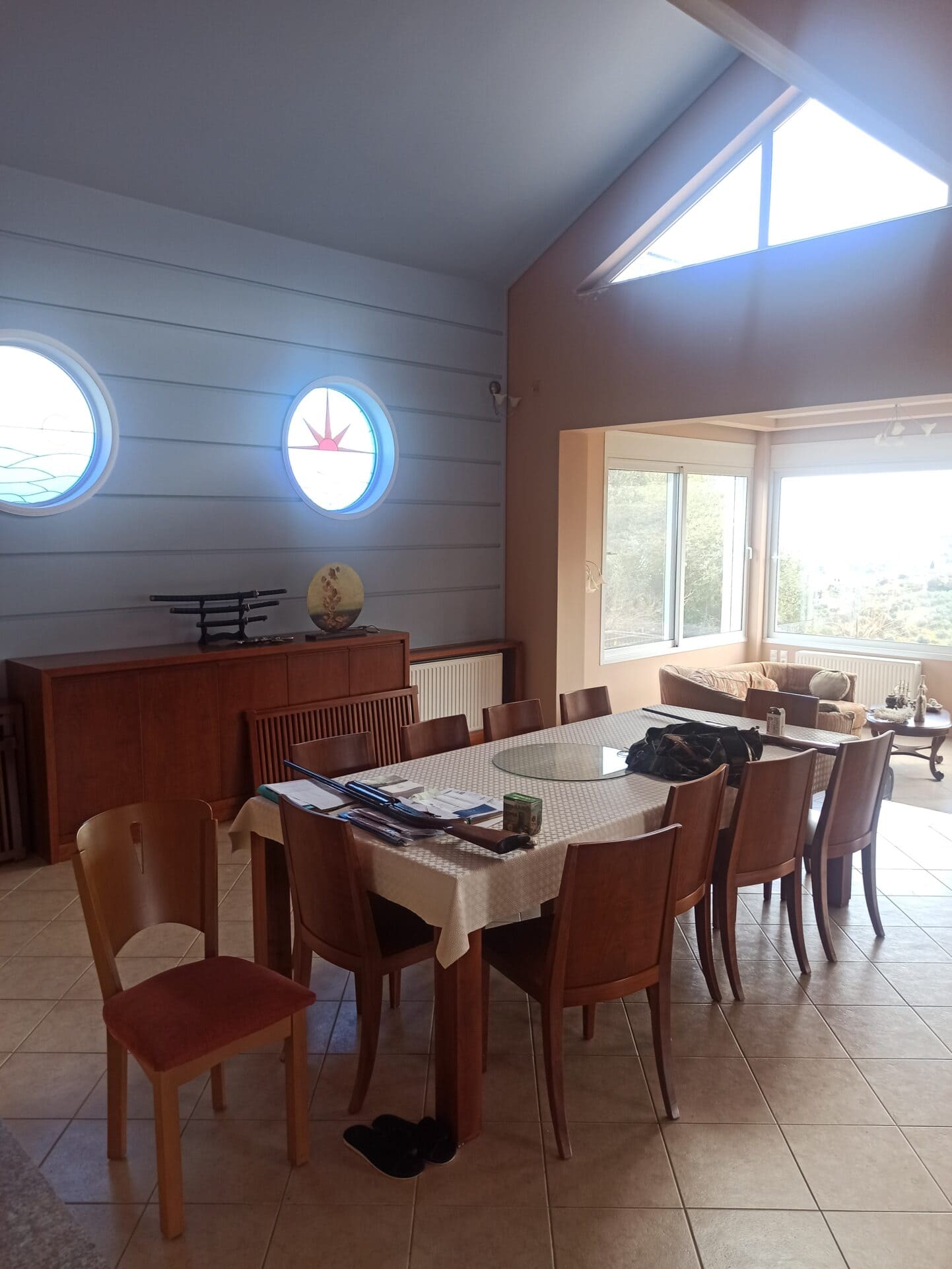 For sale a luxury three-storey maisonette in Ano Akrata, Prefecture of Achaia, Ampelos area, with a total area of 340 sq.m. , (230 sq.m. first floor + second floor) and basement (110 sq.m.) with 4 bedrooms, 2 living rooms, fireplace, 2 kitchens, 5 bathrooms, autonomous oil heating, heavy-duty aluminum frames, alarm, solar, 3 air conditioners, 4 balconies overlooking the sea, yard, garden, 2500 sq.m. , swimming pool, storage room, barbecue and closed garage. Year of construction 2006. Price: 600,000 euros. The address on the map is indicative of the area where the property is located.