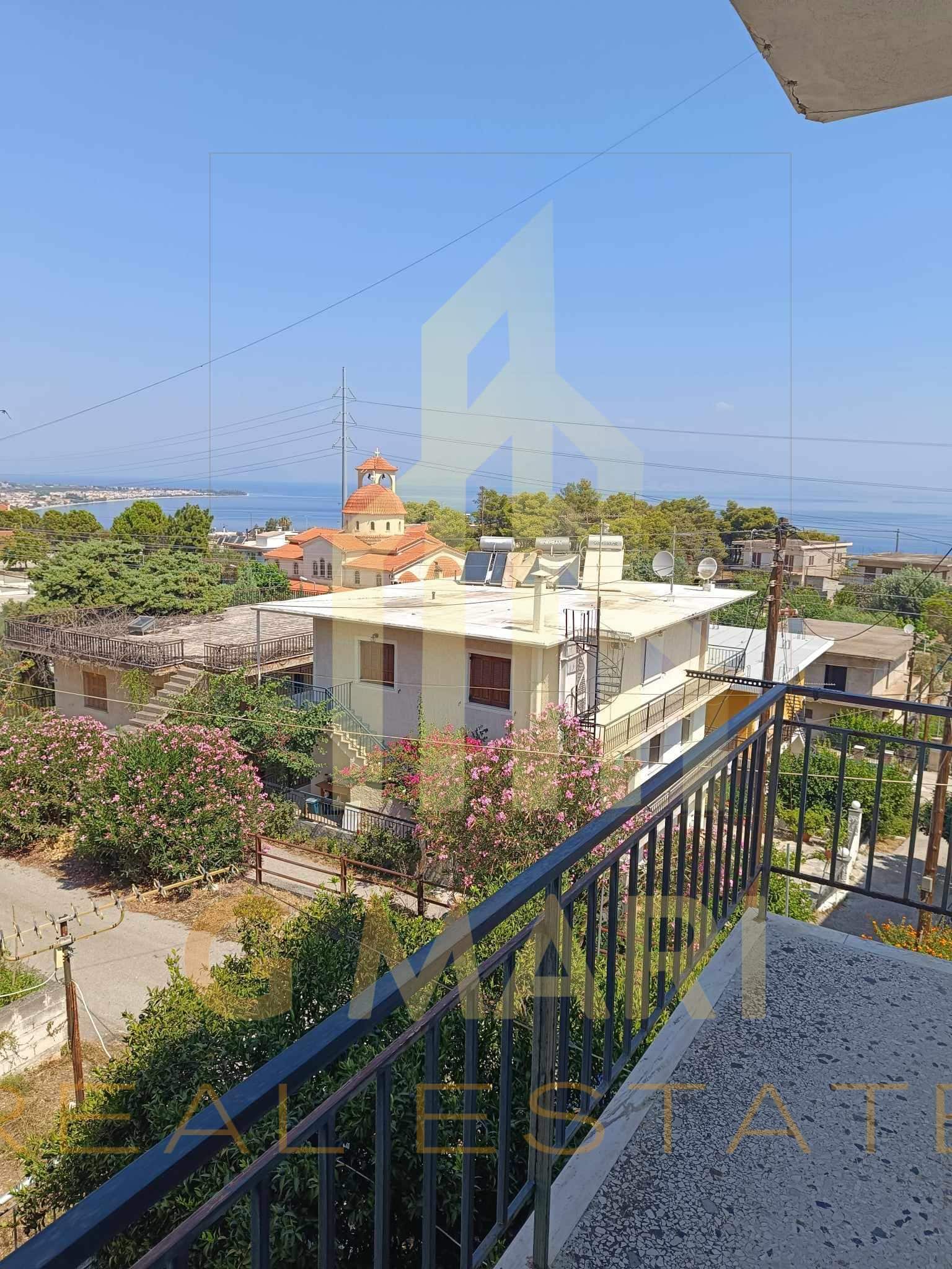 First floor detached house for sale, 104 sq.m. in a semi-detached house in Akrata, specifically in the settlement of Labinou Aiges, within Aegira at a distance of 3 kilometers from the sea and has 3 bedrooms, living room with fireplace, kitchen, bathroom, air conditioners, water heater, 2 terraces with an incredible view of the Corinthian gulf and a yard of 45 sq.m. Year of construction 1976 with renovation in 2003. Energy certificate pending. Price: 85,000 euros negotiable. The address on the map is indicative of the area where the property is located.