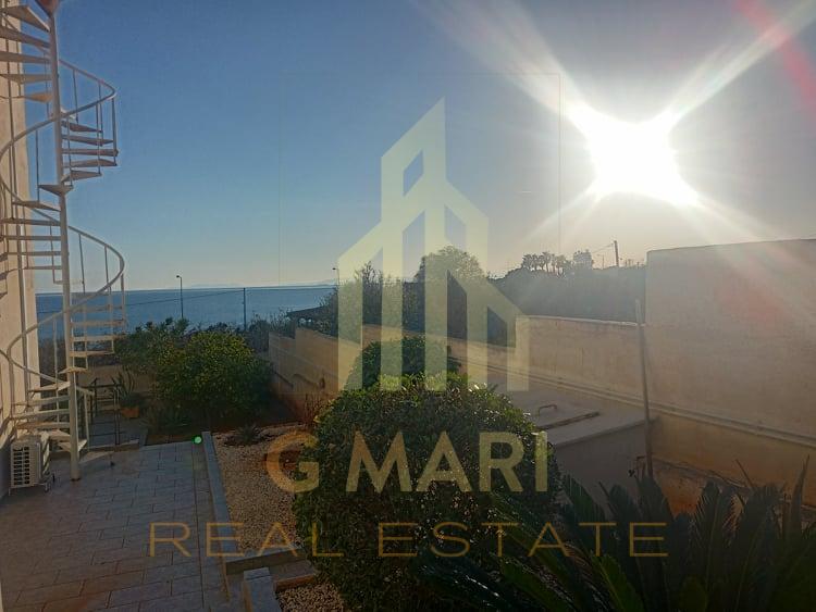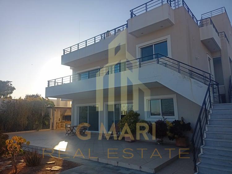 For sale a detached house of 400 sq.m. 3 levels on a plot of 1600sq.m., Which is 40 meters from Poseidonos Avenue and 80 meters from the sea where it is connected by an underground passage. It has a large garden, barbeque and open garage. The ground floor is 160 sq.m. and has 2 bedrooms, 1 bathroom, storage room and open plan kitchen 80sqm. The 1st floor is 160sq.m with 2 bedrooms, 1 bathroom, 1 wc, 1 dressing room and open plan living room, kitchen 80sq.m. The 2nd floor is 80sq.m. studio open with 1 bathroom with whirlpool and a storage room. It has 4 balconies overlooking the sea and a balcony overlooking the mountain. It has central heating and 8 autonomous air conditioners. Alarm. Safety rolls. Year of construction 2006-2019. Price: 1,300,000 euros.
